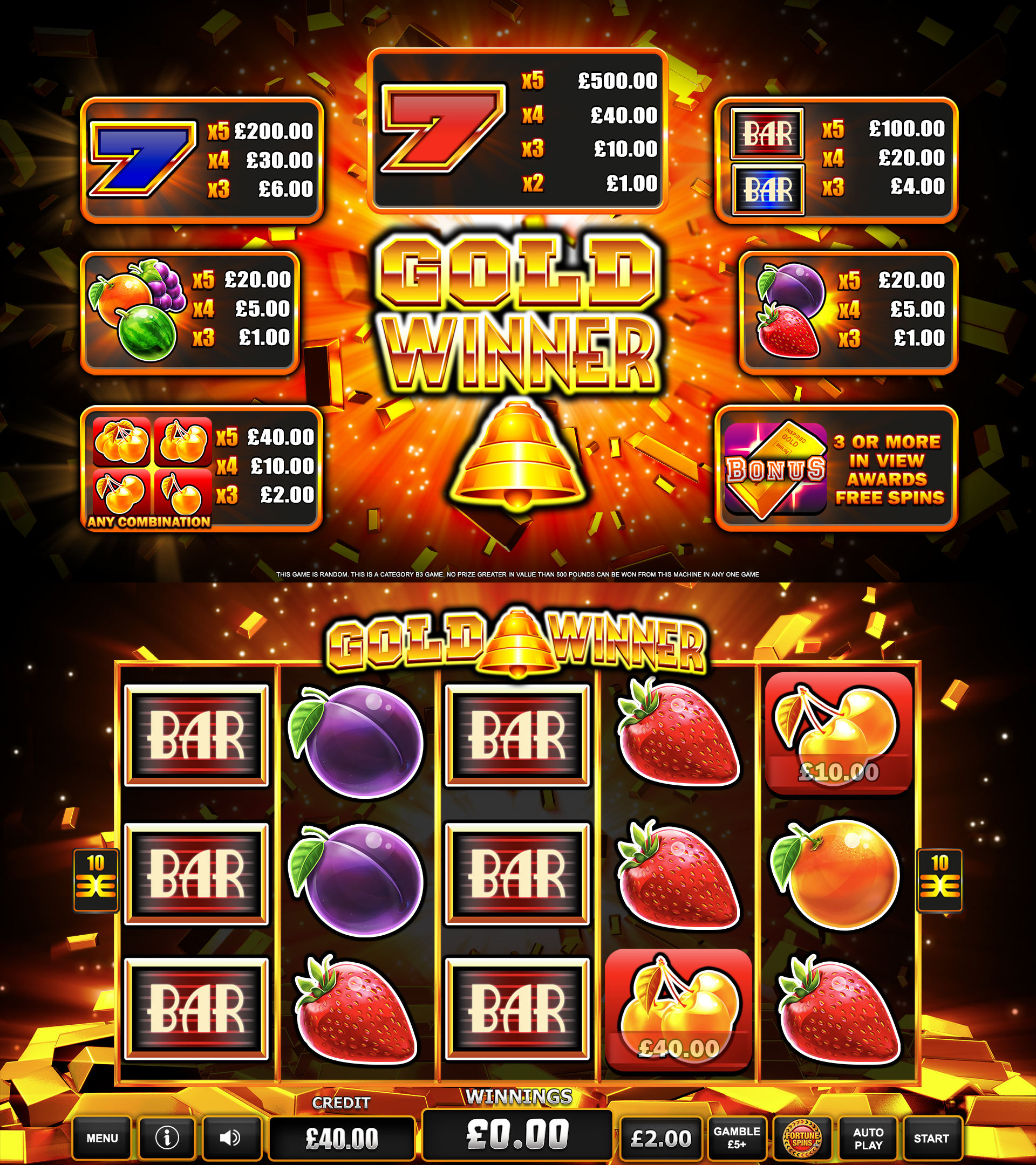 Entering Fortune Spins removes all symbols from the reels other than Golden Cherries, Golden Bells and Bonus symbols, increasing the chance at bigger wins.